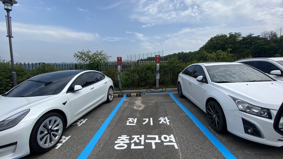 뒤 주차장에서 내리막길을 쭉 따라 내려가면 전기차 충전구역이 있는데, 칸이 몇개 없어서 전기차 충전 하는 사람들은 좀 애를 먹을 것 같다. 충전구역 약 3~4칸.