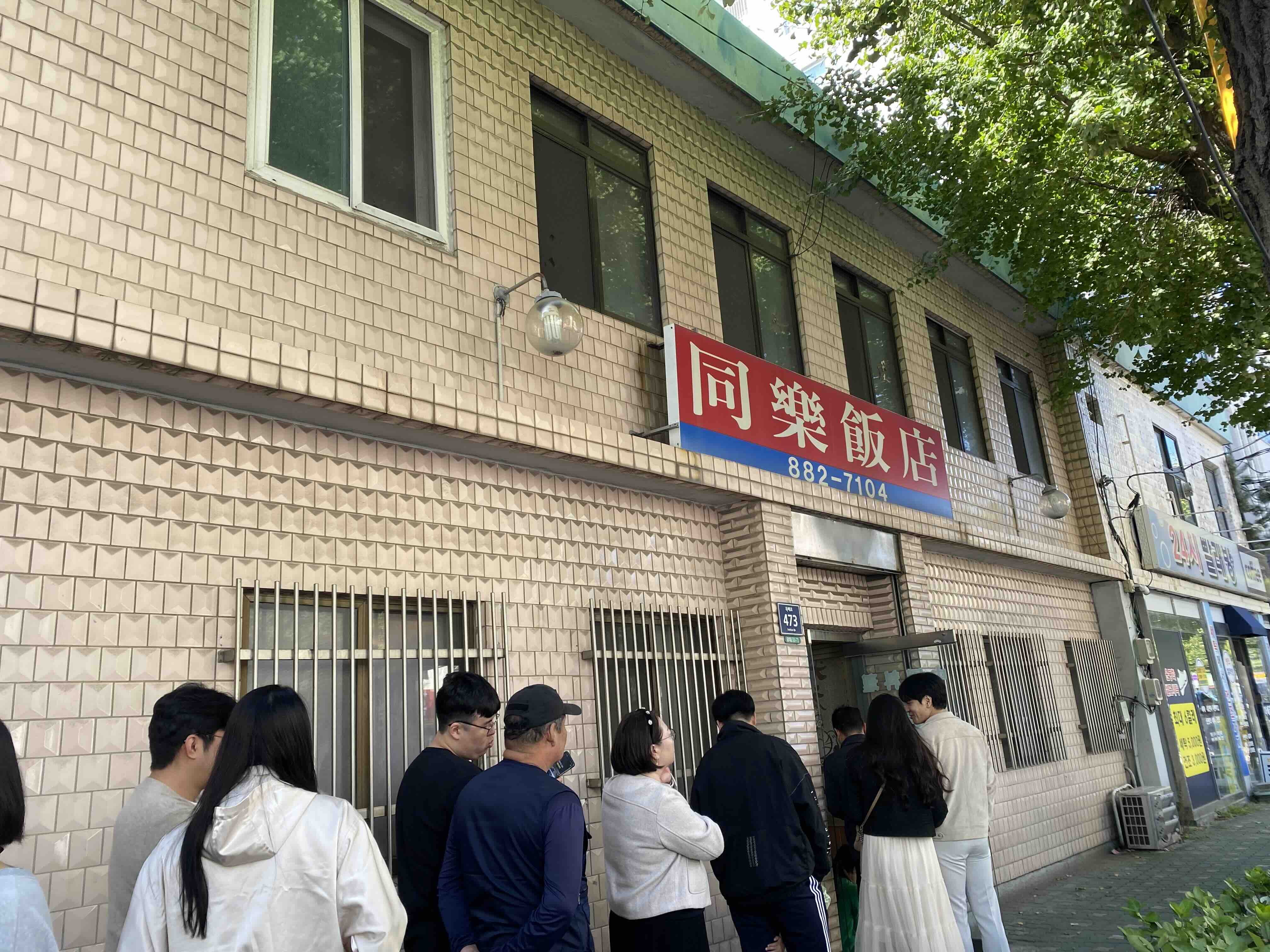 대회는 참가에 의의를 두고 우리는 점심을 먹기 대명반점으로 이동했다. 가는 길에 알아보니 일요일은 정기휴무란다. 하지만 우리에게는 맛잘알 맛집 데이터가 빠삭하신 아버님이 계시기 때문에, 바로 숭의동에 동락반점이라는 또 유명한 중국집으로 바로 이동했다. 도착하니 점심시간이 약간 지난 시간이었는데도 대기줄이 있었다. 3~40분 줄을 서고 입장할 수 있었다.