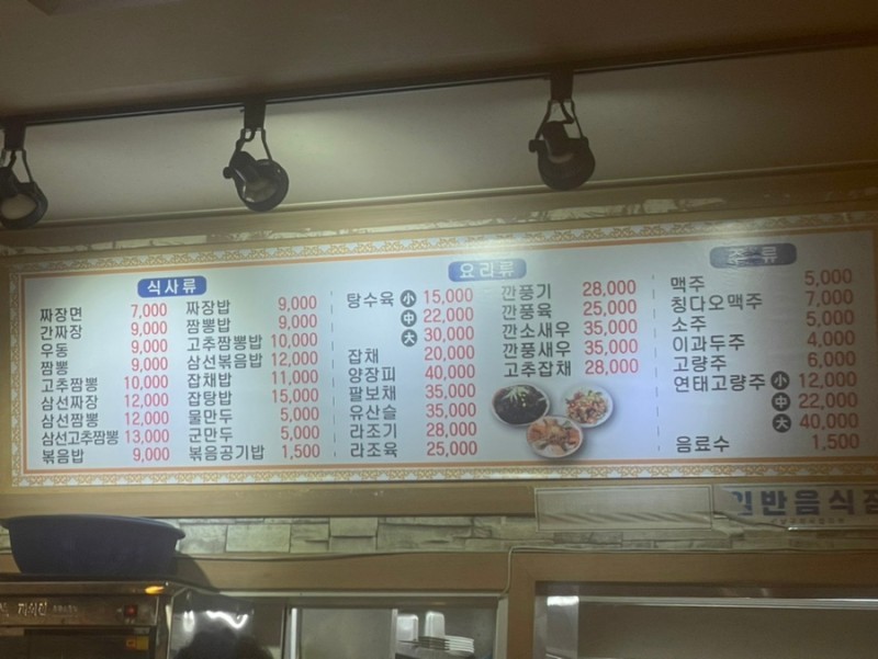 - 간짜장 곱빼기 하나, 보통 하나 (10,000원, 9,000원)