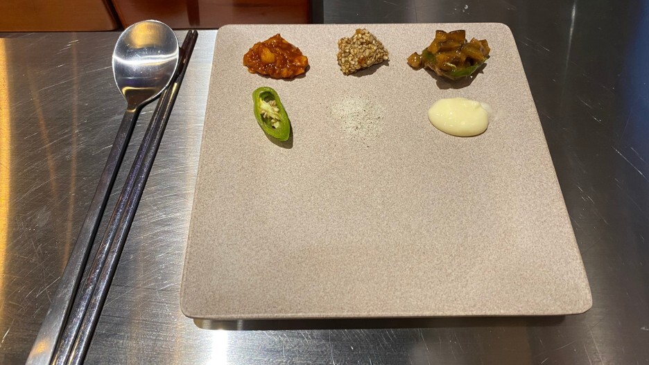 닭구이를 시키면 6종 특제 소스가 나오는데, 그 중 표고버섯와사비소스가 가장 입에 맞았다.
