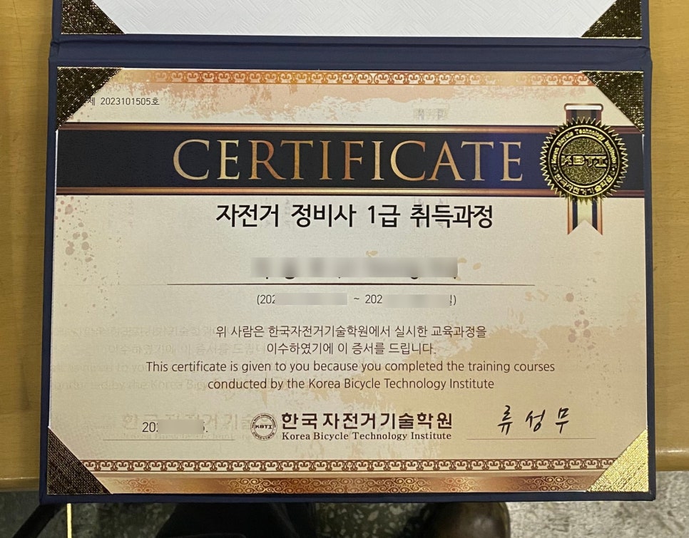 자전거 정비사 1급 자격증을 취득한 건 2022년 가을이었습니다.