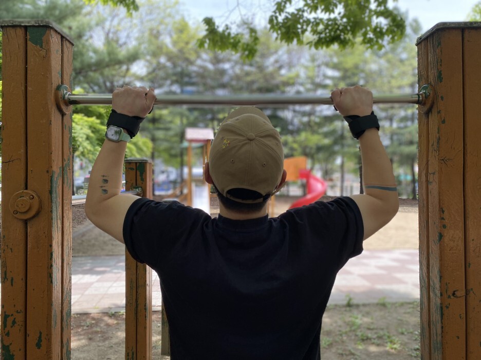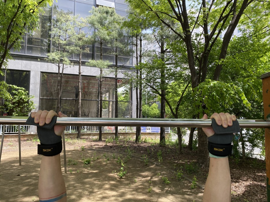 나는 주로 집에 있는 풀업바(그네 봉)를 이용하여 풀업을 한다.