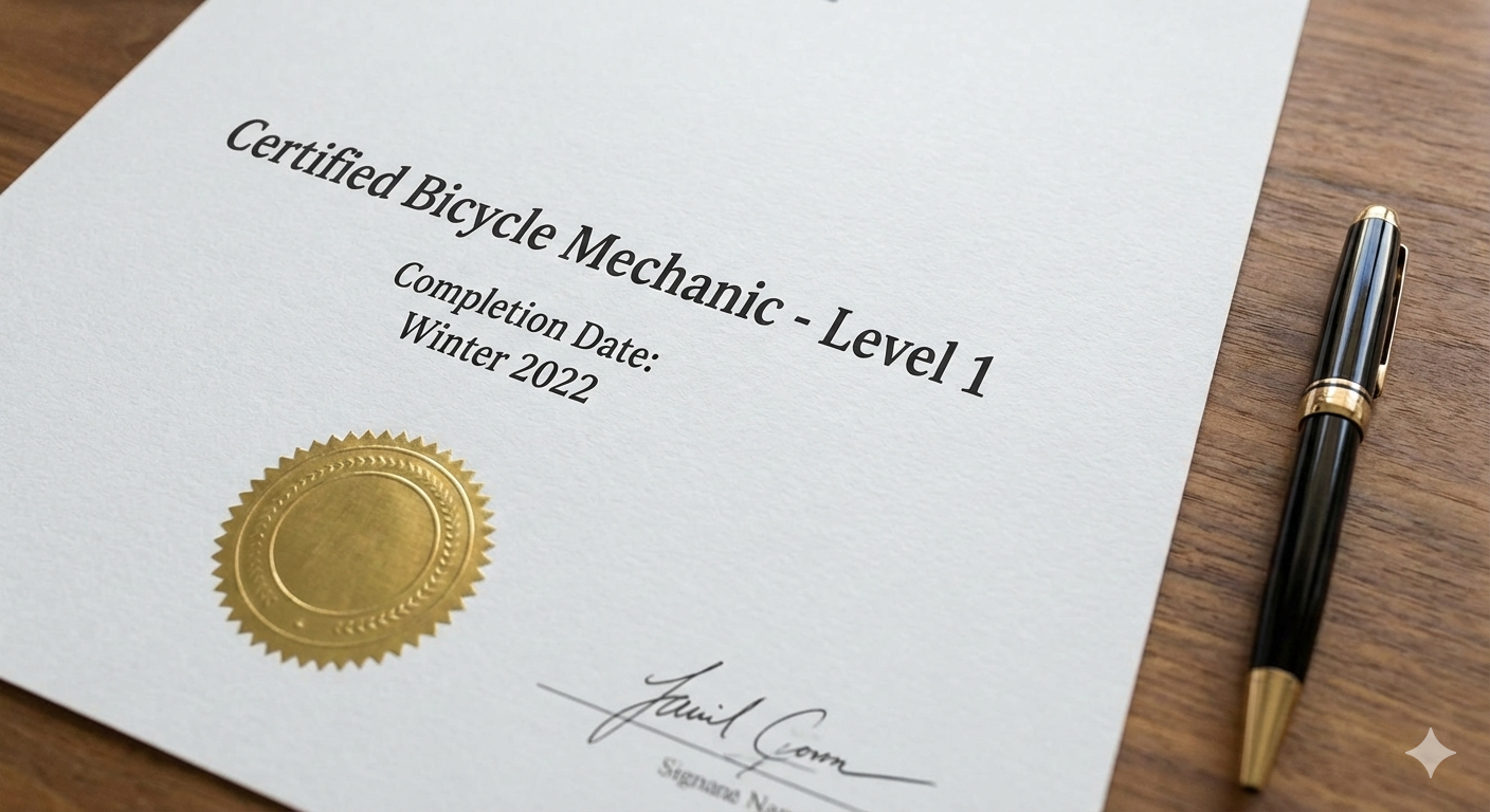 2022년 가을, 자전거 정비사 1급 자격증을 취득하며 제 도전은 구체화되었습니다.