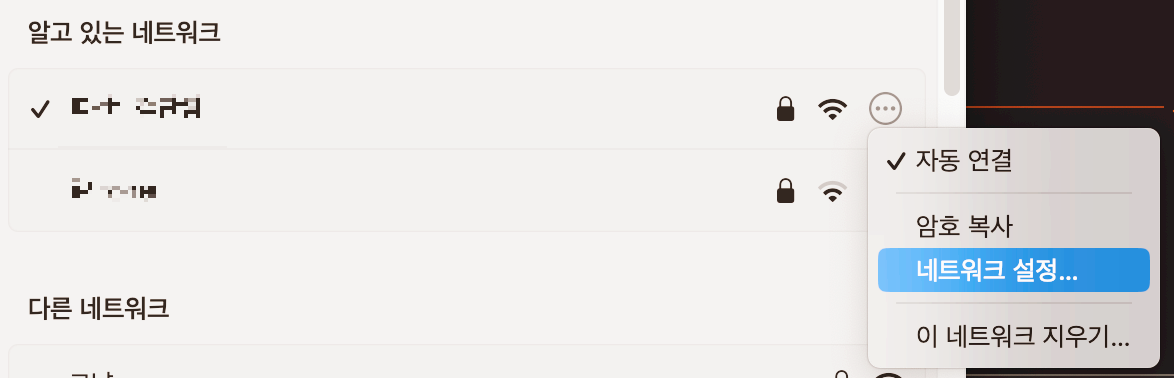 - 맥이라면, 🍎 > 시스템 설정 > Wi-Fi > 알고 있는 네트워크의 세부사항 > 네트워크 설정.