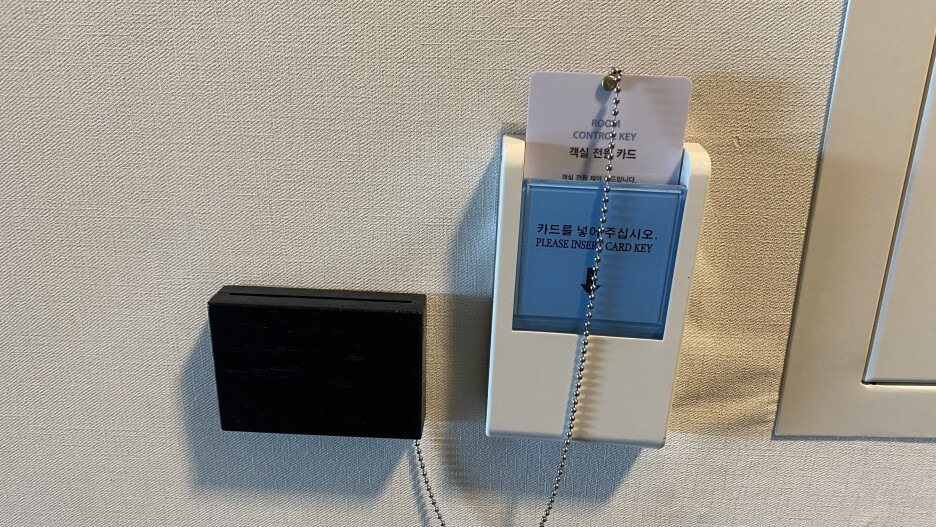 키는 받아서 비밀번호 설정한 뒤 갖고 다닐 필요가 없고, 전력 ON에 필요한 객실 카드키가 따로 있어서 잃어버리지 않기 위해 카드키는 부엌 서랍에 보관했다.
