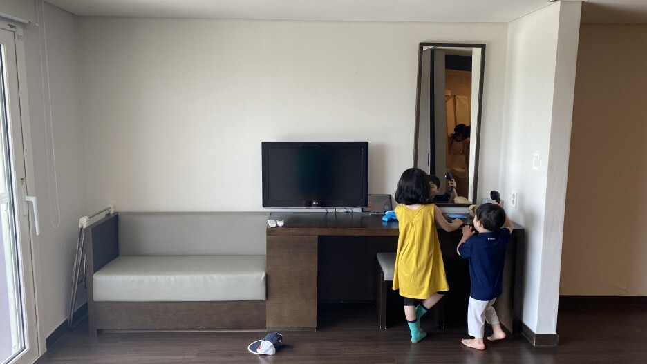 우리는 아이들과 함께 편하게 있기 위해 온돌방으로 예약했다.