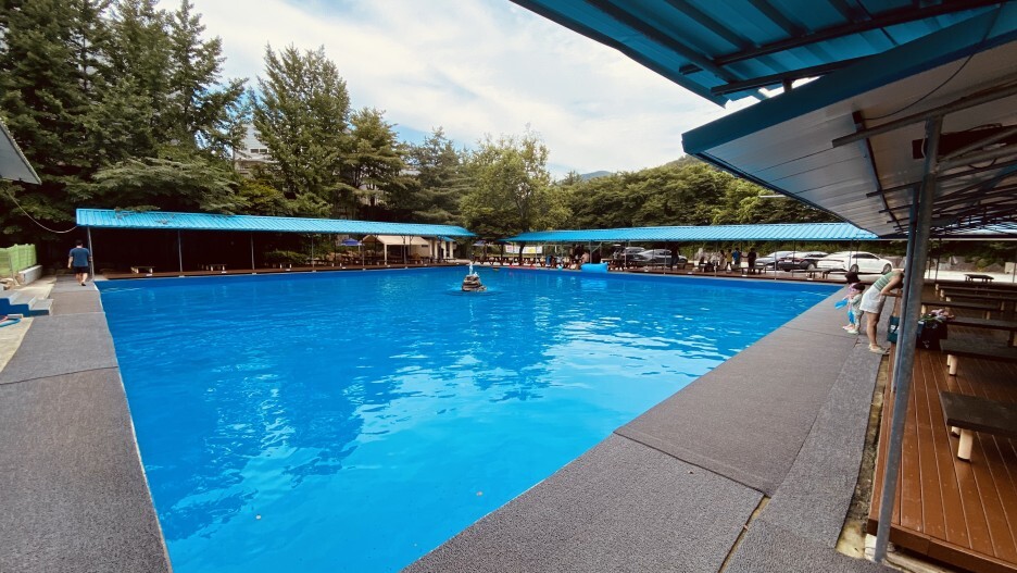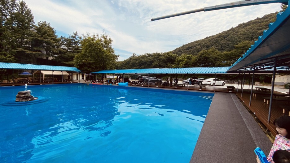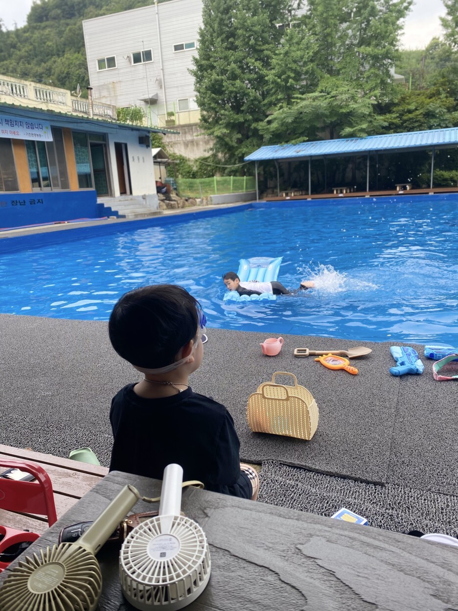 계곡은 아이들과 함께 가면 다치기 쉬울 수 있으니, 계곡보다는 이런 풀장이 있는 곳이 더 안전하게 놀 수 있다.