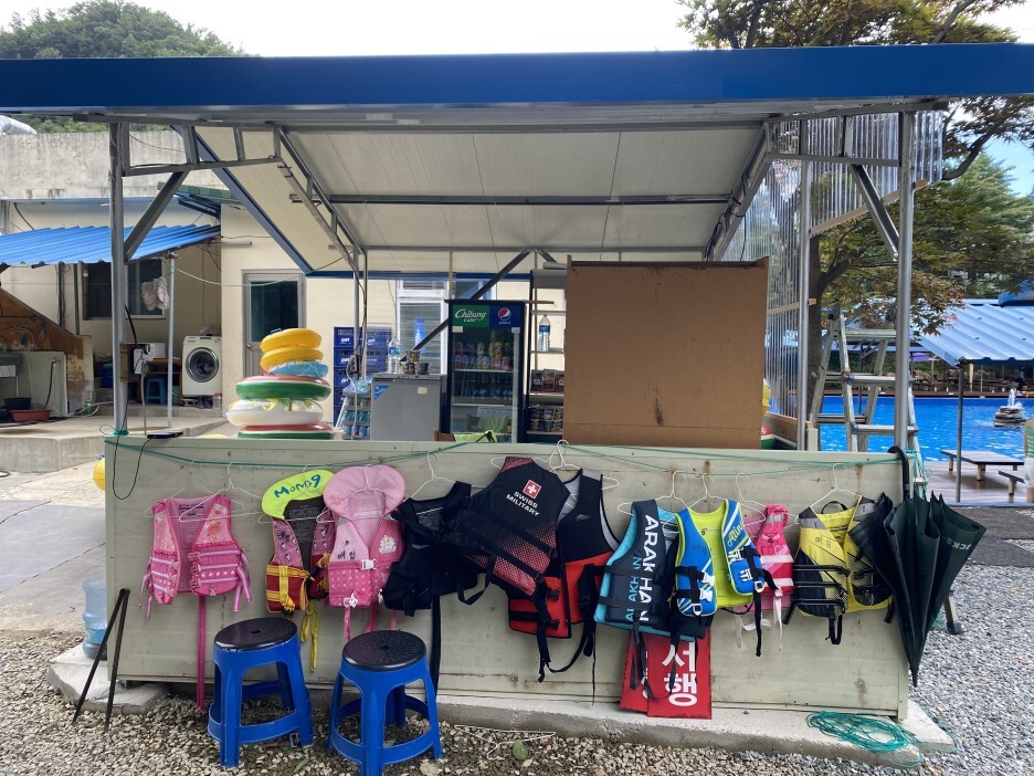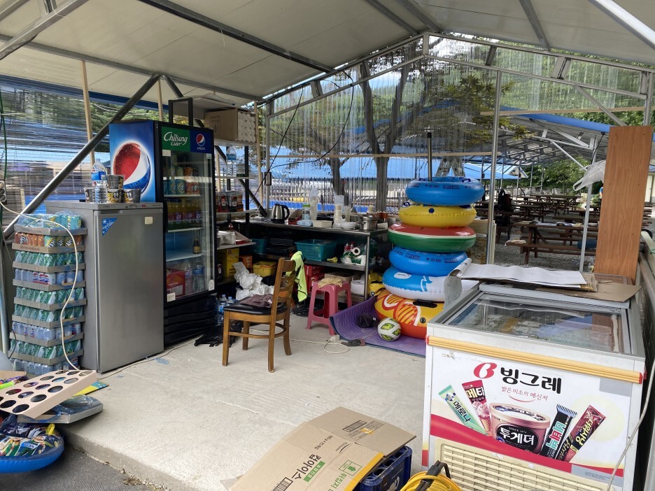 우회전하자마자 주차장과 간단한 식음료와 튜브나 구명조끼 대여, 부탄가스 등을 구매할 수 있다.