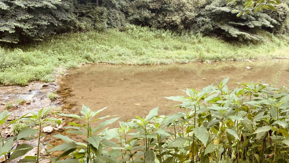 고기 구워 먹고, 바로 풀장에 들어가기 그러니까 뒤편 계곡으로 갔다.