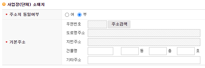 4. 사업장 소재지를 입력할 때 필요한 것이 있다. 사업장을 임차하였거나 전대하였을 때, 계약서나 전대동의서를 캡쳐해서 보관하고 있어야 한다. 계약서 상의 소재지를 정확하게 입력한다.