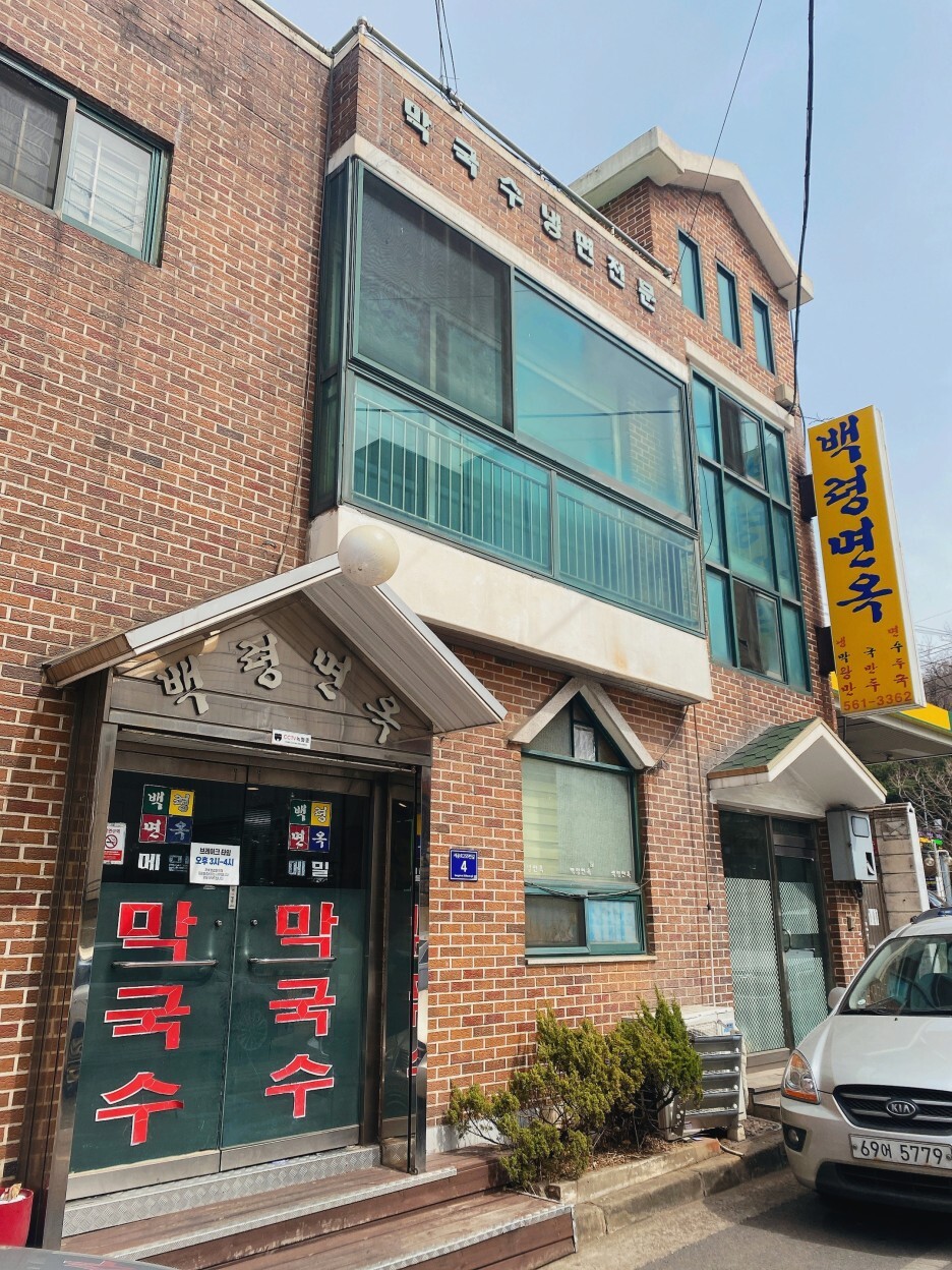 서구 심곡동에 있는 백령면옥은 건물을 통째로 쓰고 있다. 매장은 1층만 운영하는 듯 하다. 건물 옆으로 주차장이 있는데, 홀의 테이블 수에 비해 주차칸은 모자란 느낌이다. 하지만 주변 골목에 그냥 댈 수 있어 주차에 어려움은 없었다.