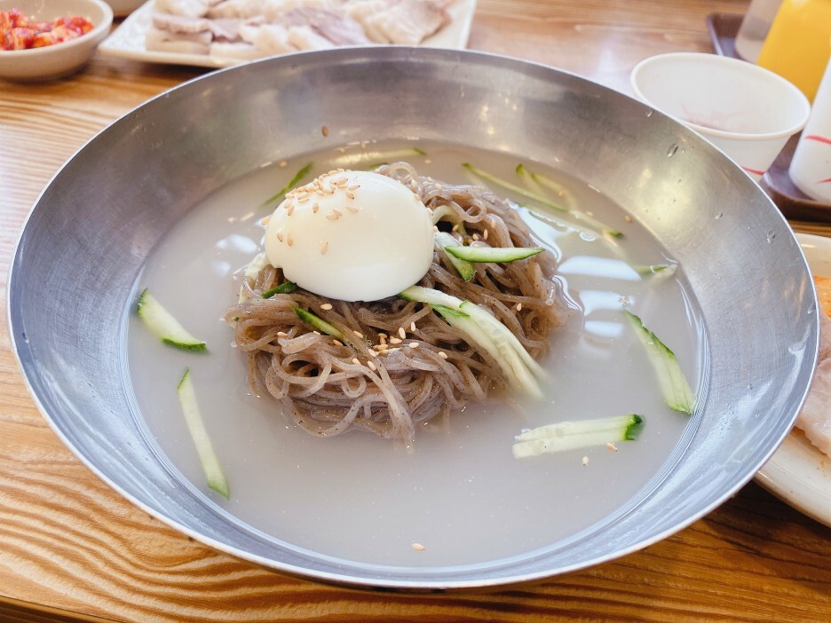 냉면의 면수도 이거로 만들어 지다 보니, 메밀면수로 인해 일반적인 냉면과 맛의 차이가 있는 것 같다.