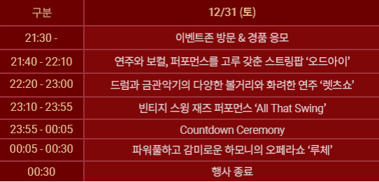 - Year-end & 2023년 맞이 축하 공연(아래 일정표 참고)
